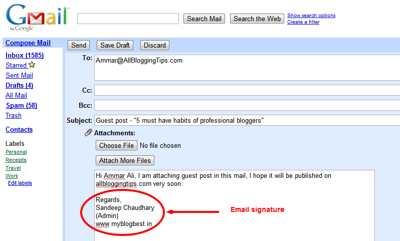 Email signature, SEO tips for bloggers, must have habit of professionals